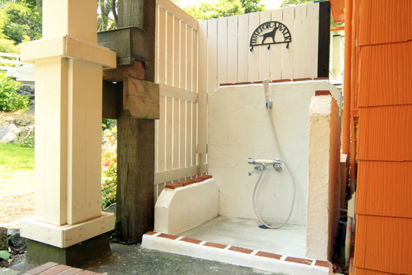 玄関横には温水シャワー付きの足洗い場♪