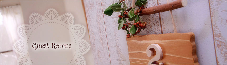 マーフィのこだわりの一つがこのカントリー調の小物たち。特にダイニングルームは壁やカウンター、棚にいたるまでカントリー調にこだわっています。泊まっていただくお客様へ、宿の環境づくりも大切なサービスの一つ。特別な旅行の特別な宿にしていただくために・・・。