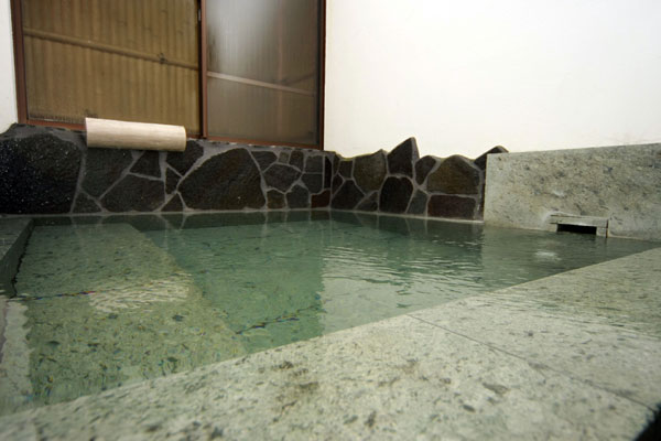 内風呂は伊豆石を使ったグリーンの映えるお風呂