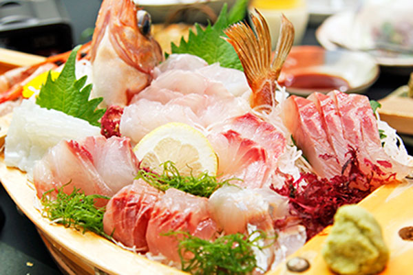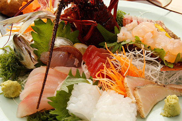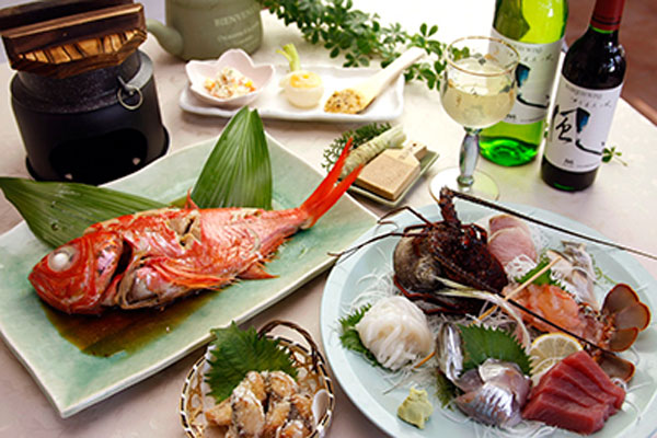 伊豆の幸と言えば、「金目鯛」、「伊勢海老」、「あわび」、「伊豆牛」そしてなんといっても新鮮な地魚!