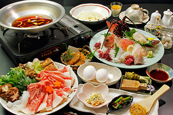 当館で2大人気のメイン料理と言えば、「金目鯛のしゃぶしゃぶ」と「伊豆牛のすき焼き」♪この2つをお二人以上でお召し上がりいただく新定番メニューを始めました!