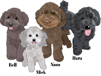 ベルの妻でナナのママ。胴長、短足が特徴です。欧州の方ではドアーフプードルと言うらしい。