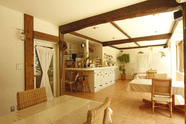 フレンチカントリーの館内とジャンクガーデン